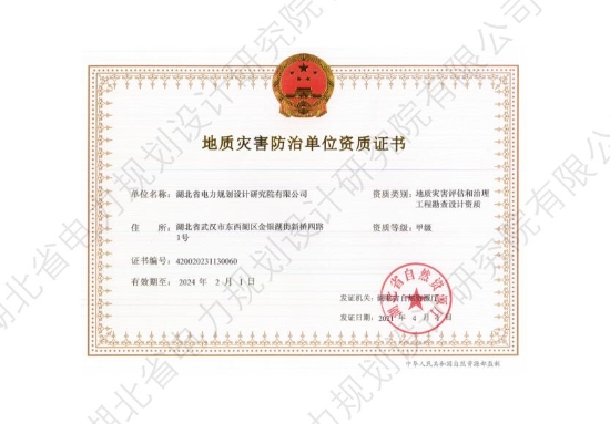 地灾防治单位评估、勘查、设计资质甲级
